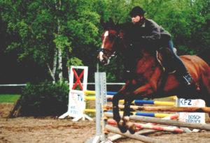 Dominique war eine Westfalenstute, ein erfolgreiches Springpferd und mein ganzer Stolz. Wir kauften sie zehnjährig in der Nachbarschaft als braves Lehrpferd für Kinder. In der Vergangenheit war sie von kräftigen und gut reitenden Männern geritten worden und es stellte sich leider bald heraus, dass sie für ein Mädchen meiner Statur nicht geeignet war.
